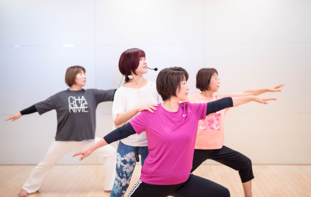 レッスンプログラム 年齢にとらわれない、私らしく動ける場所 「運動が久しぶり!でも大丈夫」 音楽に合わせて動くカンタンなエアロビクスから心ときめくダンス系まで 「リラックスしながら体を整えたい」 呼吸を整えながら気持ちよく体をほぐす癒しのヨガやゆったりストレッチ 「これからもずっと、自分の脚で歩いていたい」 ”一生自分の脚で歩く!””認知機能アップ!”の秘策満載な、健康体操や簡単エクササイズ 12月レッスンスケジュール表面12月レッスンスケジュール裏面 自宅からも参加できるオンラインレッスン 外出が難しい日や自宅で運動したい方のために、ZOOMを利用したオンラインレッスンを実施しています。スタジオでグループレッスンを受けている感覚で、自宅からリアルタイムでインストラクターのレッスンを受けられます。 オンラインレッスンは、コース利用時間外のレッスンにも参加可能です。 インストラクター紹介 八木 恵子 池田 雅子 宮川 伸子 藤田 富美子 浅野 真奈美